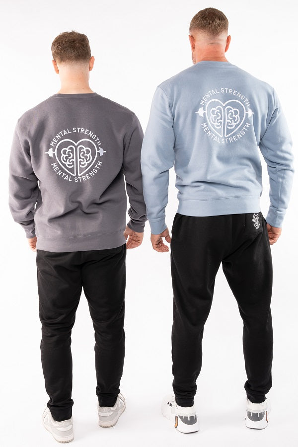 Our crest symbolizes everything we stand for, a huge heart with a brain inside showing how interconnected the heart and mind are. Coupled together they then have two weights on the side showing strength, Mental Strength, both in the heart, mind and body. Some garments have the full crest with the wording and others just the symbol but all carry a very powerful message.
